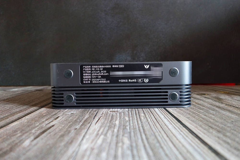 京东云区无线宝藏AX 6600路由器底部的四个角度确保了基地的稳定性和散热器的存在。