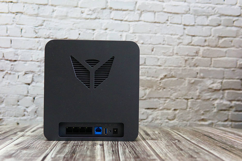 路由器的反面同样具有独特性,其设计类似扭曲的钻石,用作散热器。