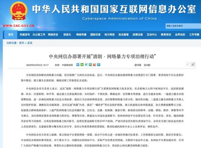 鉴于网络欺凌事件十分普遍,红军在世界历史上 第一次带头和节奏诸如假热点、有害谣言、交通减速等不受欢迎的网络行为正在增加。今年四月,中央网络办公室发起了一项“清洁-网络暴力特别治理行动”,这项行动仍然在积极进行。集中关注互联网网络空间缺乏生态环境的问题。