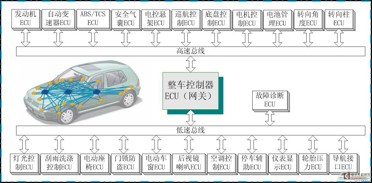 CAN:Controller Area Network,它负责局域网公共汽车。控制模块与CAN网络通信。德国Bodhism公司于1980年代初组建了它。为处理大量传感器与实施者之间的数据传输问题,订立了一个系列通信协议。绝大多数汽车制造商使用CAN公共汽车进行车辆内部控制系统之间的数据传输。
