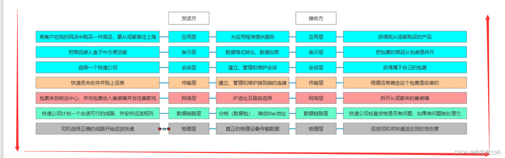 TCP/IP协议分级,从应用层开始,逐步进入网络界面层。