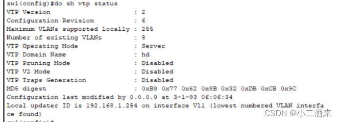 使用以下名称启动 VTP 协议: vtp 域 hd