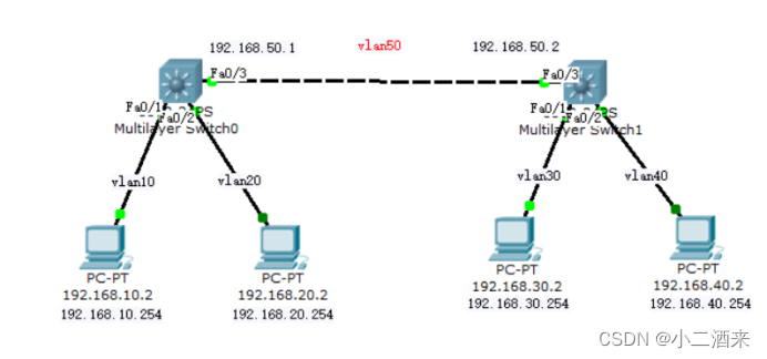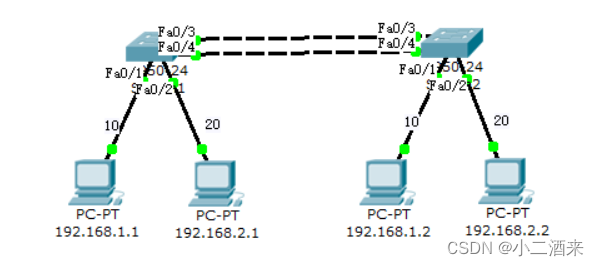 因此,港口也相应加在Vlans 10和Vlans 20之上。