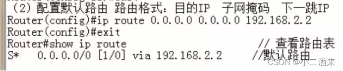 需要在全局模式下:IP 根地址、 目标 IP 地址、 子网遮罩和下一个跳入地址