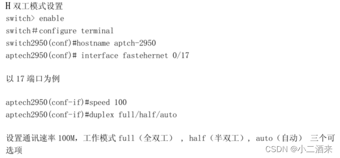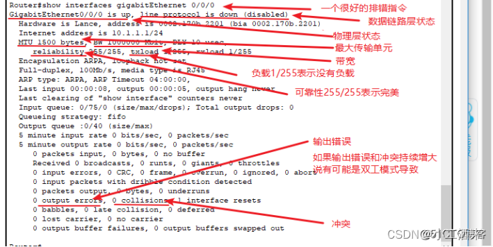 注:进入到 全局配置模式 首先,端口与网络连接,使接口能够正常运行。