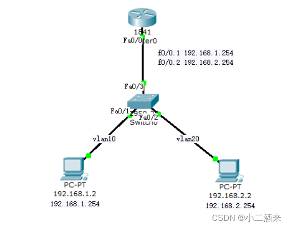 在f0/0.1或Intf0/0.2时,它产生一个子界面。