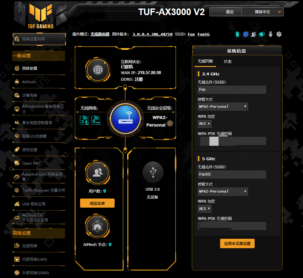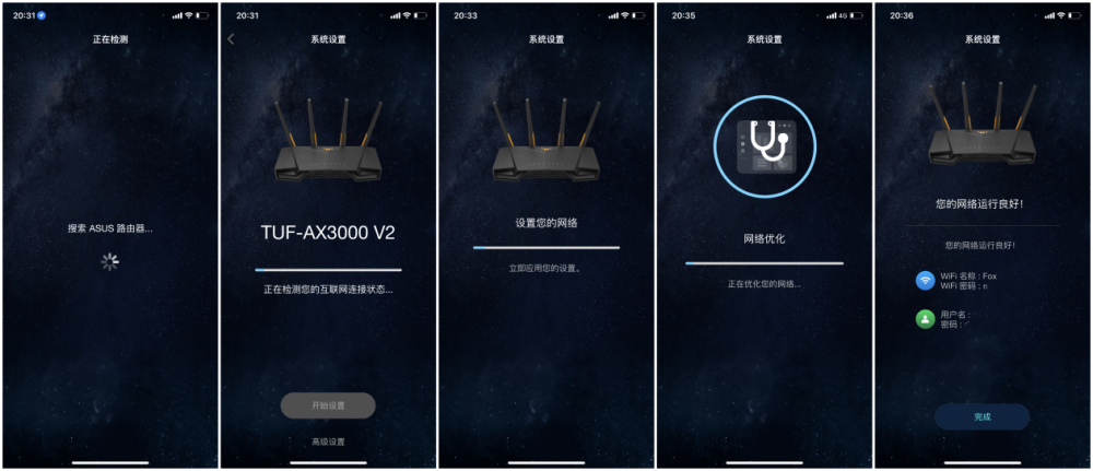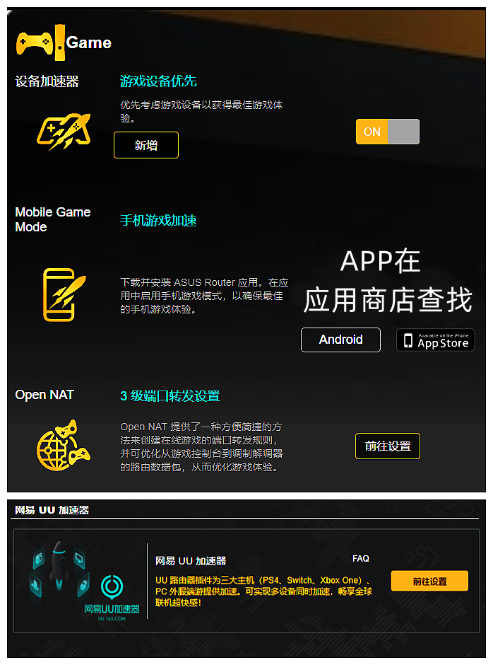 AUSUS TUF GAMING的小气旋路线的电源适配器不同于前一种模式。占地面积更小了。安装上,等着网络识别。此时,您可以通过在移动电话应用程序上下载和安装二维代码搜索APP或扫描指令。网络部署后,您可以实际运行网络。