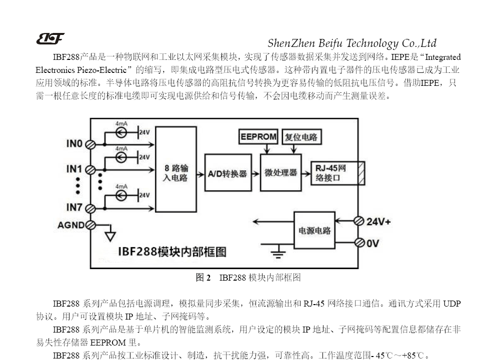 IMF288系列有动力调制解调器、模拟体积同步收集、连续流源输出和RJ-45网络接口通信。通信使用UDP协议完成。用户可以配置模块IP地址、子网遮罩和其他参数。