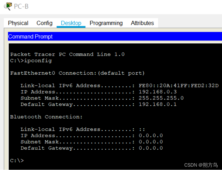 配置 PC- B 的 IP 地址、 子网罩、 默认网关设置 。