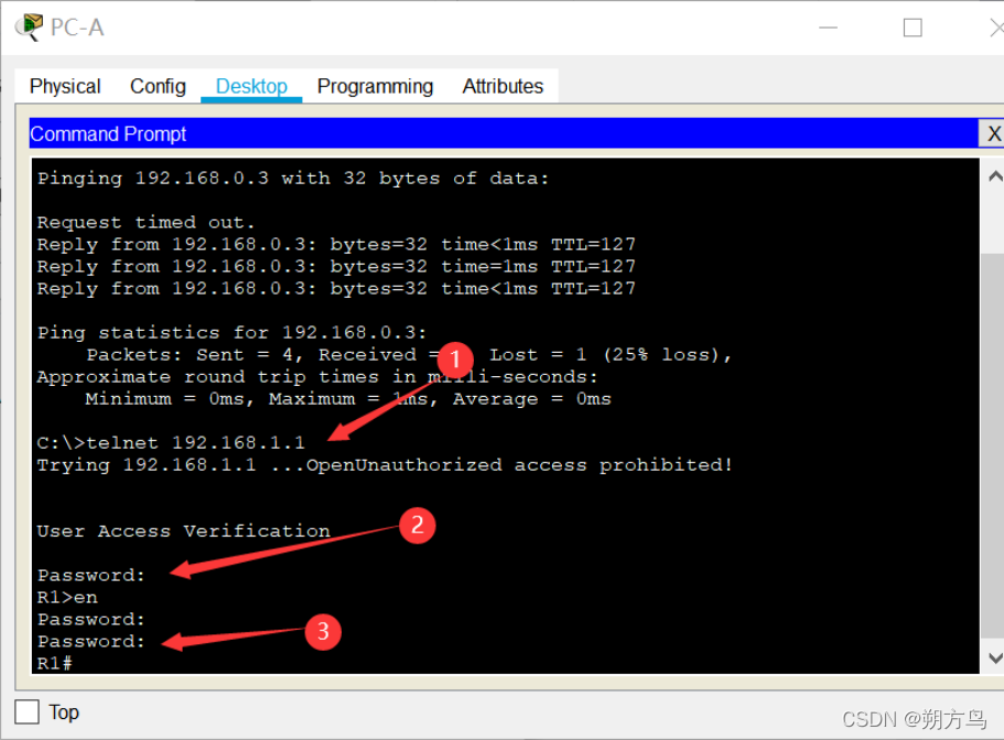 将以下命令输入到 PC-A 命令提示中以便成功登录 。