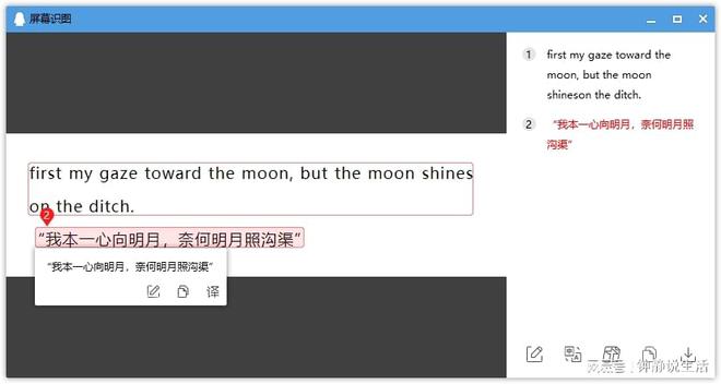 您可以使用 Ctrl+Alt+F 快捷键立即在屏幕上框框和翻译任何区域,并在翻译前后在任何位置对中文和外语自由检查翻译结果。
