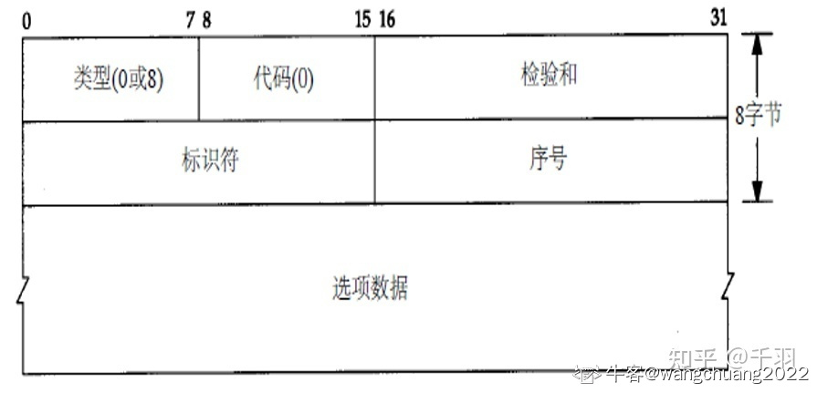 - ICMP发件人组重复请求,身份识别字段填写了进程编号,序列号字段从0开始,以时间号递增方式转发请求报告,并在选项数据中保留发送时间。