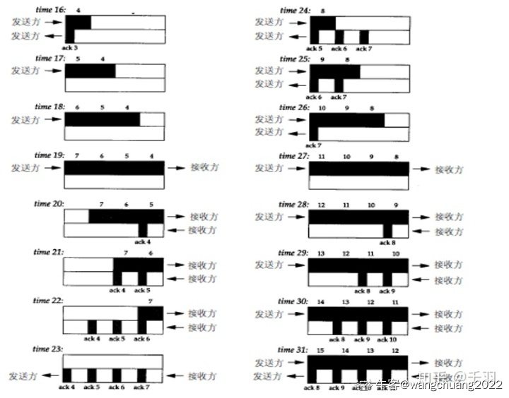 - 计时器过期后,未收到序列号确认,重新发送电文,修改压缩窗口,并提出rto的后退系数。
