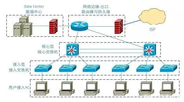 如果在线生态系统更大,情况就不一样了。将存在一个汇合体和一个核心层。像这里的话,就直接没有汇聚层,不过思想是一样的。以下所列错误针对用户的计算机。事实上,数据中心网络错误相似 。无论网络环境有多复杂就这么简单