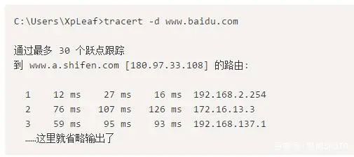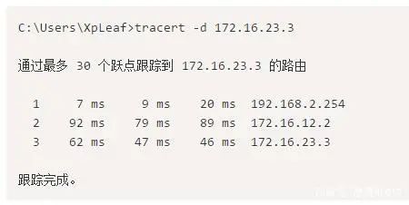 在上述网络环境中,如果进入网络,我们在计算机上使用追踪指令,结果如下: