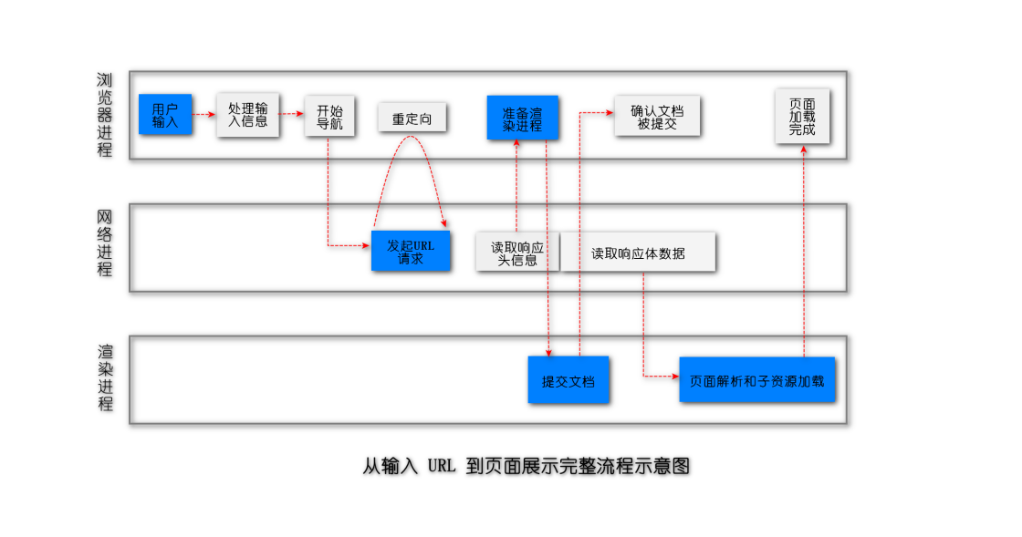 包括所有阶段浏览器的浏览器进程、 网络进程和创建进程 :