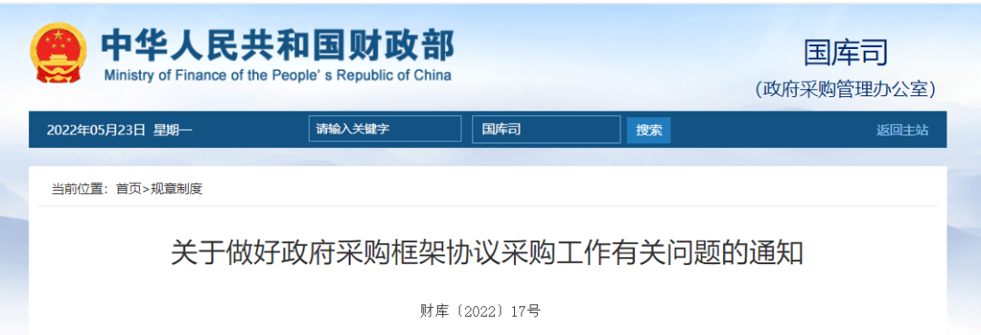5月23日,财政部发布了关于政府采购框架协议中良好采购问题的通告(下称 " 通告 " )。