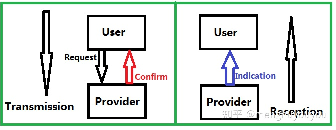 通俗地讲,发送时,用户先请求提供者,然后提供者发送,再次确认用户; 获取,提供者通知用户,如下图6。当数据通过LLC或MAC发送时,即发送或者接收,以同样的方式,并根据上述准则,现在让我们从这三条服务线开始准备编写更多的LLC和MAC说明。