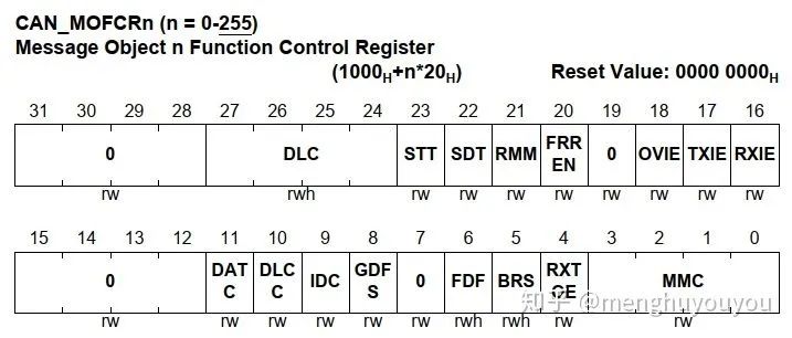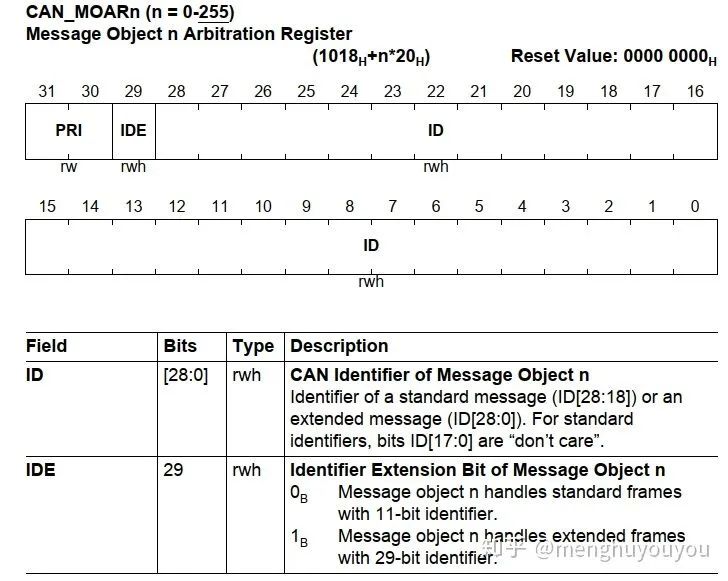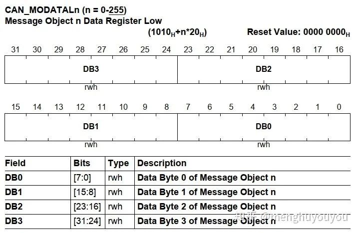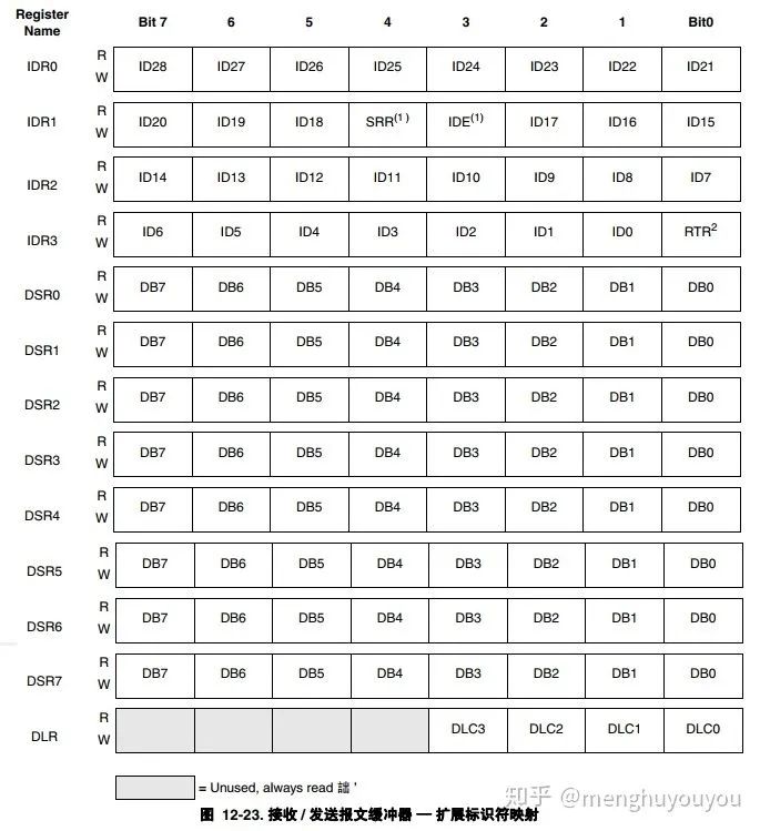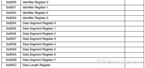 图20显示了NXP用户手册中所述的CAN框架登记册:
