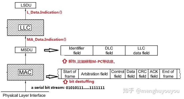 如下文图13所示,MAC传输或接收的数据框是上一条“CAN”协议中规定的数据框。