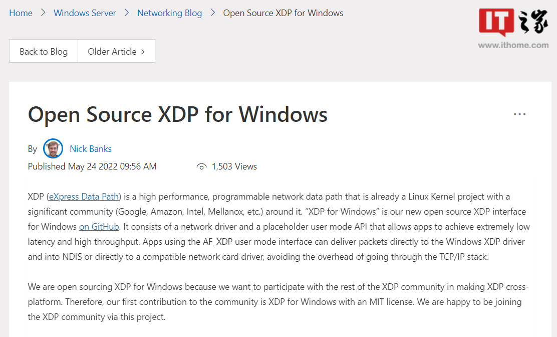 IT之家了解到,Windows 的 XDP 仍在工作 。微软公司的目标是在开发过程初期提供其来源,以便XDP社区能够提供投入。