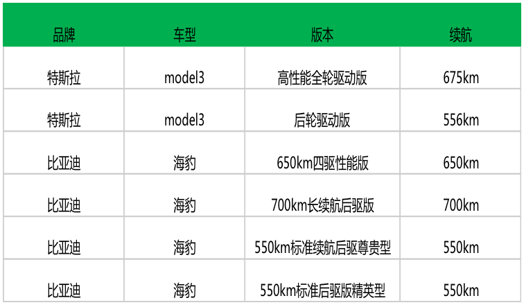 然而,在连续性水平上,模型3的高性能全轮驱动式全轮驱动版本为675公里,略高于海豹650公里,模型3的单一发动机版本继续为556公里。