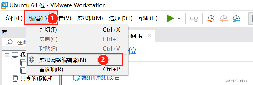 打开菜单栏的 编辑 -> 虚拟网络编辑器