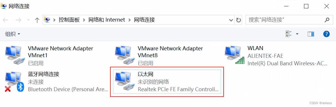 在 Windows 主机打开控制面板 -> 网络和 Internet -> 网络连接,找到以太网