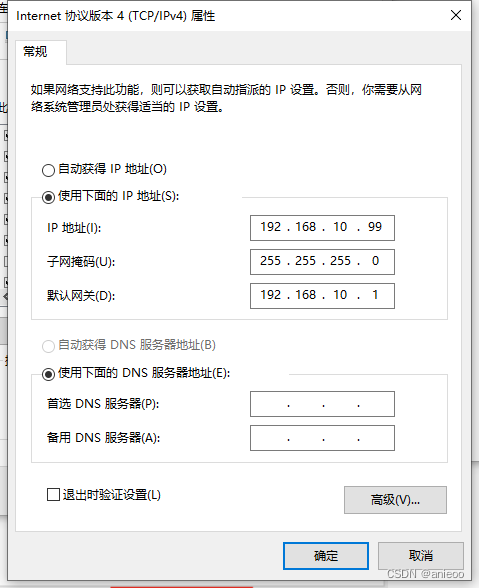 手动配置 IP 地址、 子网络遮罩和网关 。