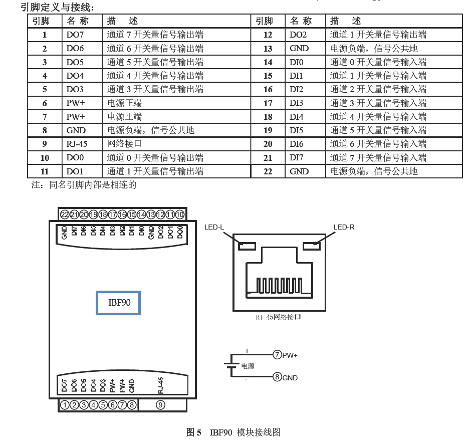 INBF90远程I/O模块支持测量八向信号和八向输出开关。
