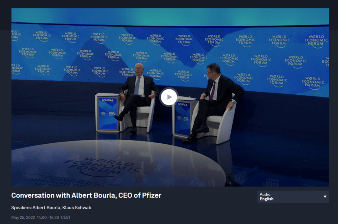 近日,在Twitter、Twitter及其他网站散发了广泛下载的录像。它表明,辉瑞公司首席执行官Albert Bourla在今年5月22日至26日在瑞士达沃斯举行的2022年年度世界经济论坛(WEF22)上发表了看法。辉瑞公司打算到2023年减少世界人口的一半。我的幻想正在变成现实