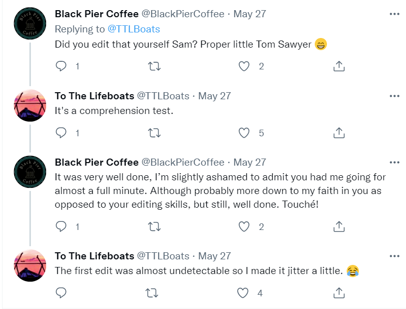 多位推特用户提交评论, 表示该视频已被截断, 并询问是否由@TTLBoats所制作。@TTLBoats承认并声称这是一个“谅解测试”。委员会还注意到,经过修改后,录像的原始版本更难辨认。必须作出改变。