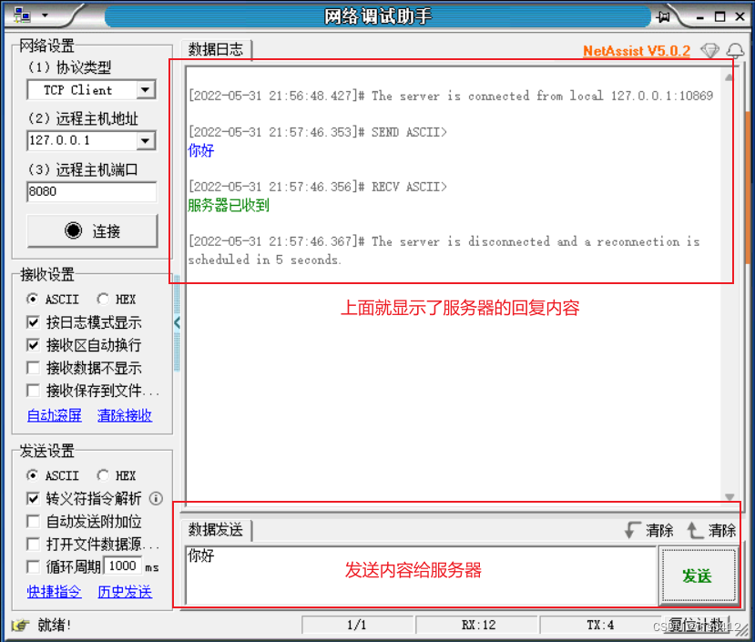 1。 设置一个 tcp/ pp 服务器
