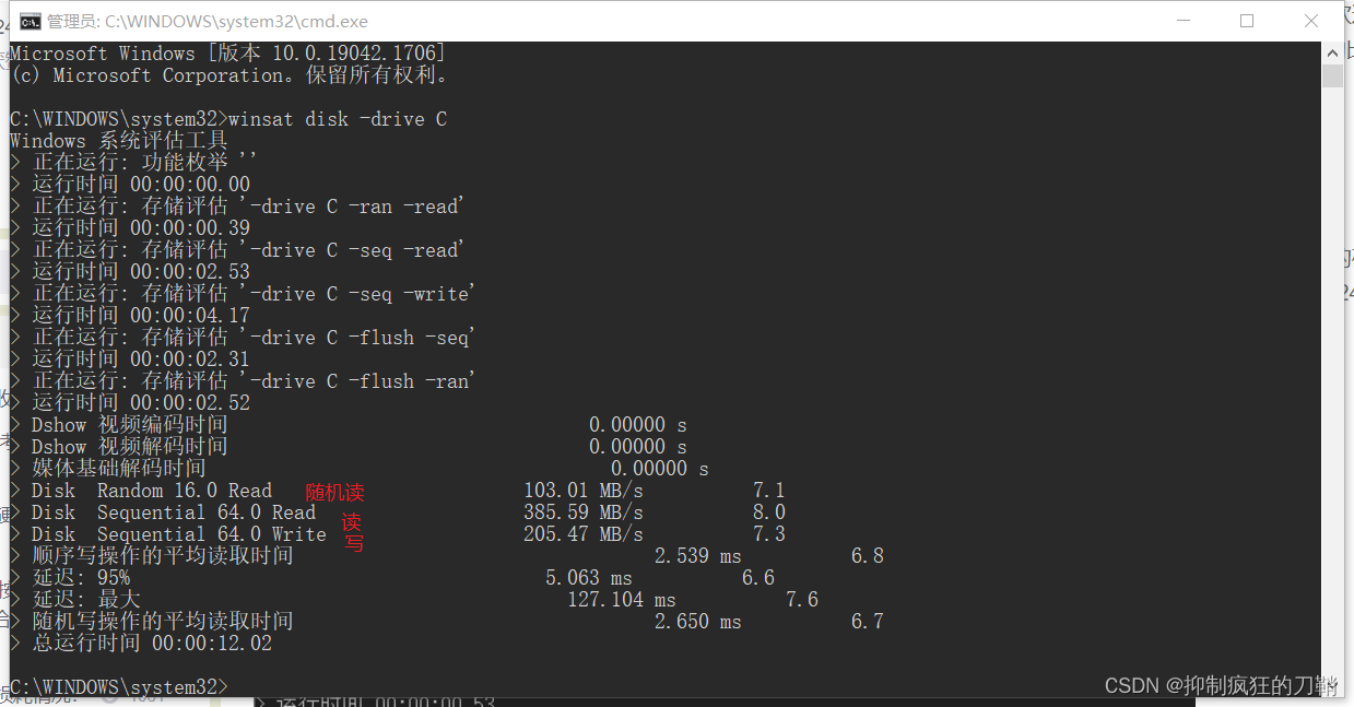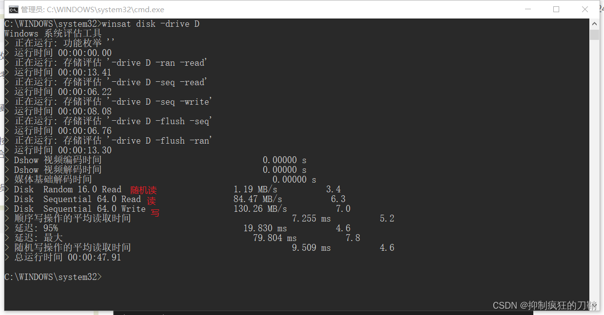 然后,为了评估驱动器C的性能,请使用 Winsatdisk-drive C 命令。