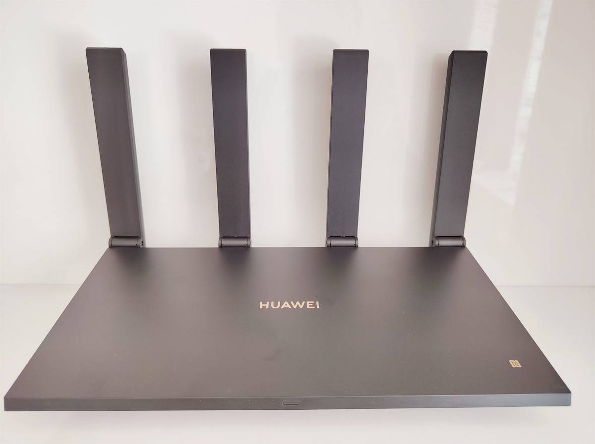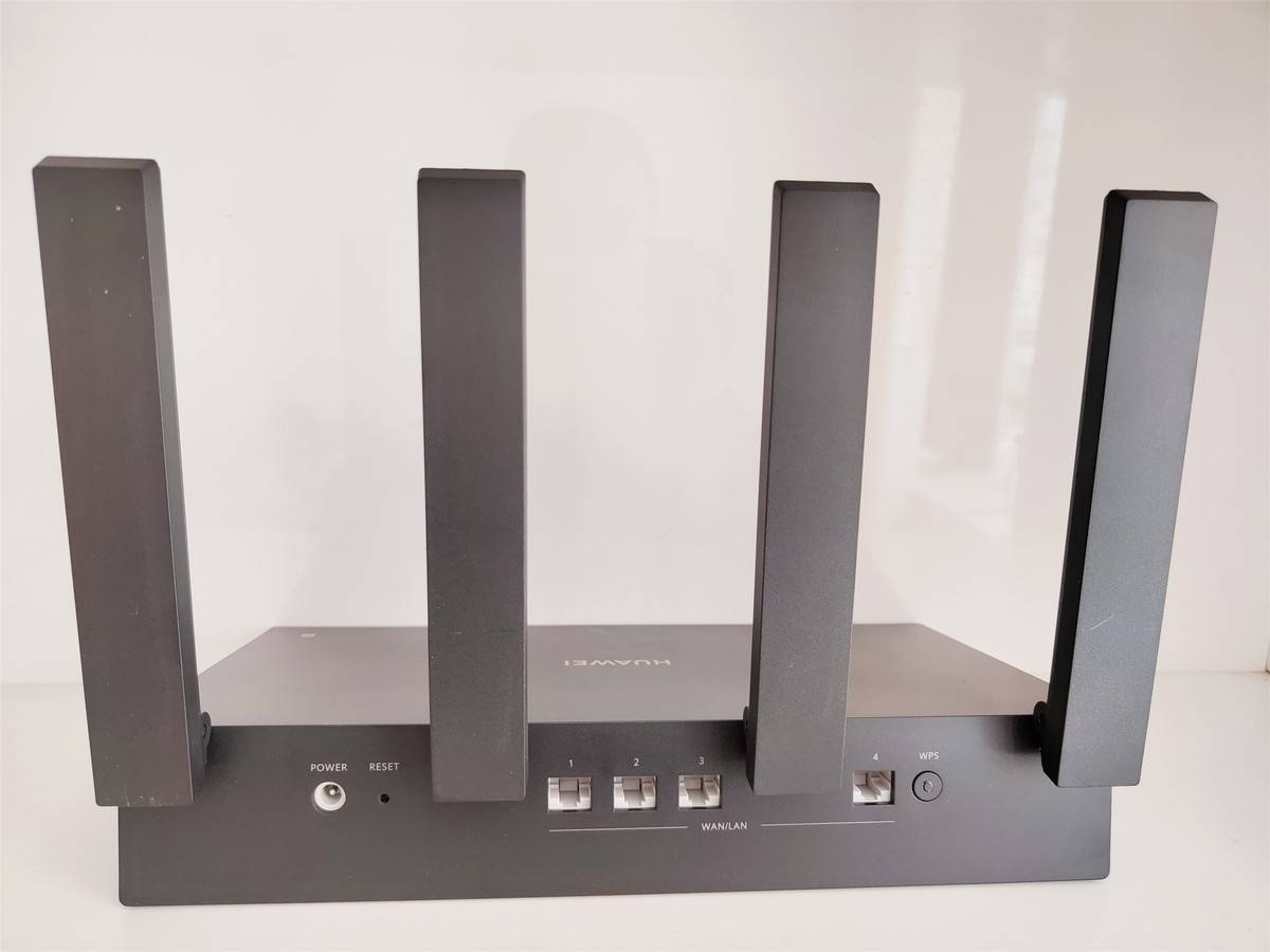 AX6是用黑色制造的,燃烧的“HUAWEI”标志是可见的,四根天线可以折叠而不影响机器。