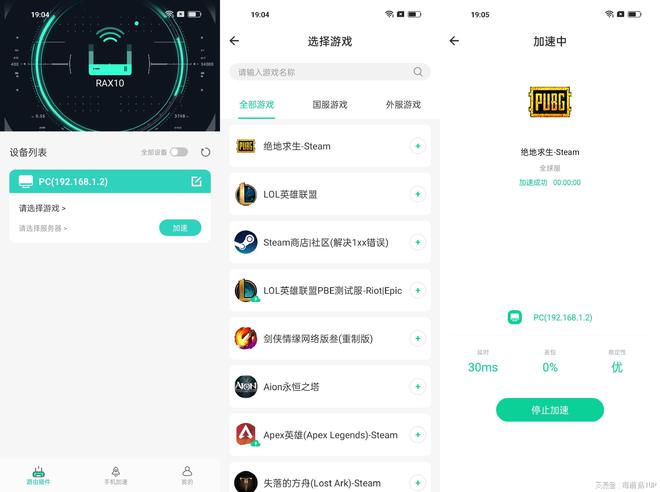 重点来了,网基RAX10有自己的快速加速器功能。你可以通过一个基于网络的清扫代码得到它, 或者你可以从一个移动电话应用程序商店得到它。通过注册和登录,您可以查看现有设备(RAX10)。激活插件后,您可以选择加速装置。比如上图,左侧展示了我的电脑然后选择游戏,例如,绝地在逃命