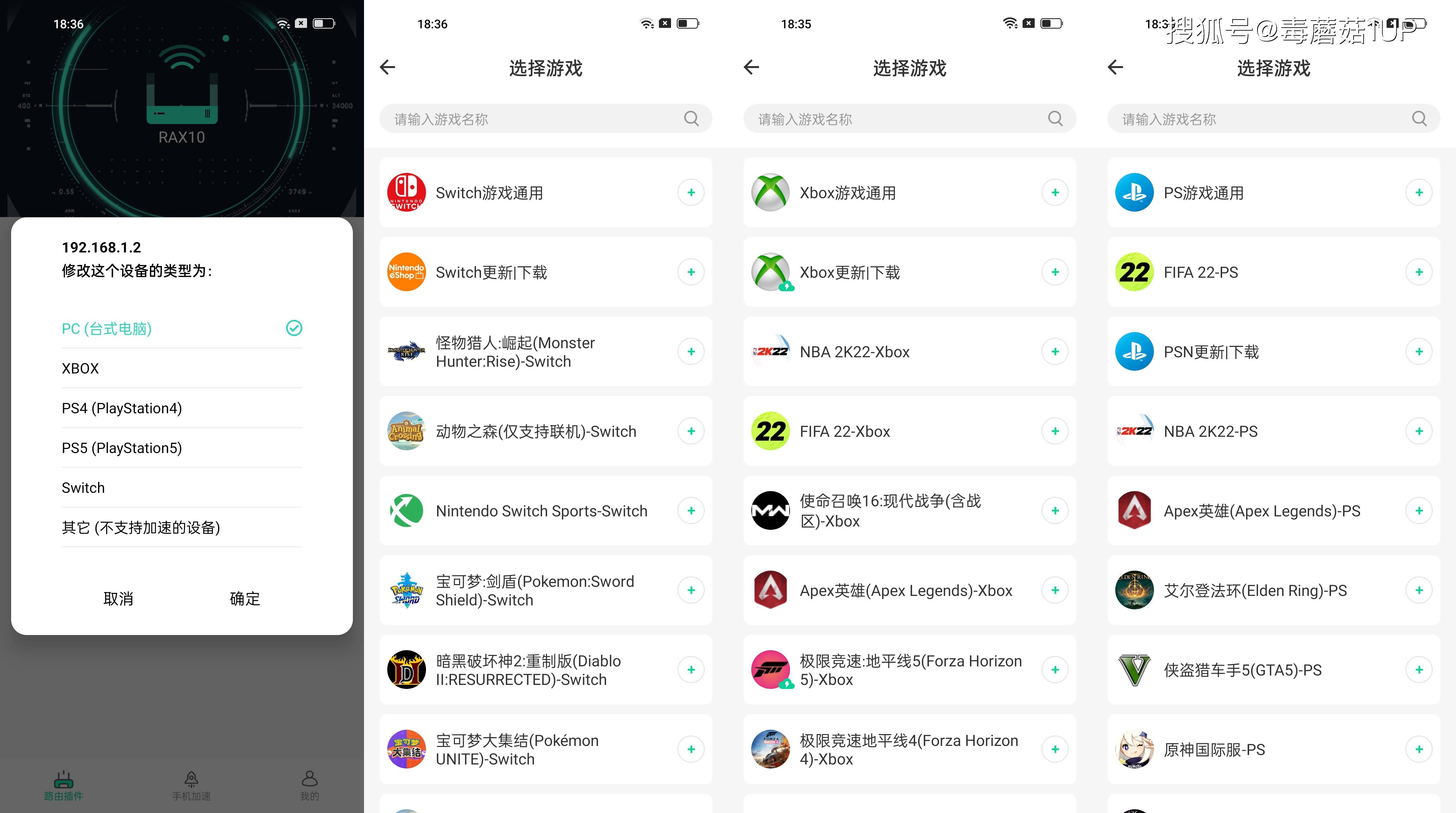 重点来了,网基RAX10有自己的快速加速器功能。你可以通过一个基于网络的清扫代码得到它, 或者你可以从一个移动电话应用程序商店得到它。通过注册和登录,您可以查看现有设备(RAX10)。激活插件后,您可以选择加速装置。比如上图,左侧展示了我的电脑然后选择游戏,例如,绝地在逃命