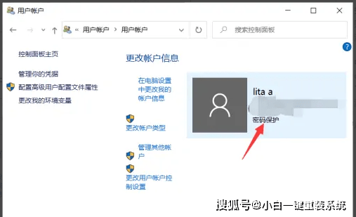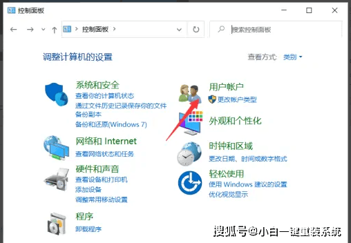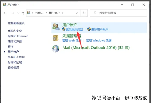 3.在控制面板界面找到用户帐户,然后单击Enter。