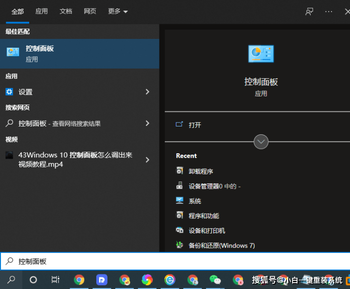 在搜索框中输入控制面板,然后输入控制面板的接口。