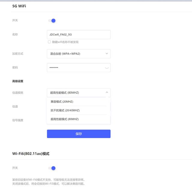 AX1800支持Wi-Fi6 (802).11ax模式,该频道频率带宽支持兼容模式(20MHZ),抗干扰模式(20/40MHZ)和超高性能模式(80MHZ)。许多设备现在支持Wi-Fi 6,它可以使家庭网络更快.然而,一些网民也反映,一些旧设备在打开Wi-Fi6后不能连接到互联网,为了照顾不兼容的旧设备,无线云路由器AX1800可以自由选择 whether to turn on Wi-Fi 6 mode,。