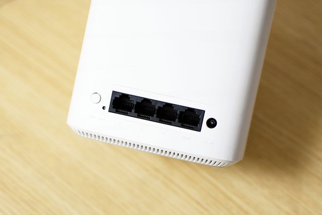 AX1800无线宝云路的键和接口位于设备的背部,包括300万的LAN端口和100万的WAN端口。 我们没有看到机器上的USB端口,表明机器不支持外部存储设备,而是使用内置存储空间。