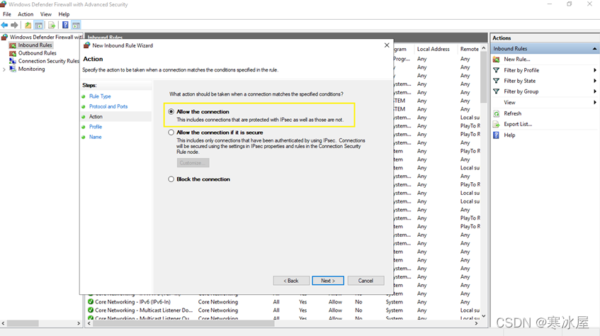 在操作步骤中,选择允许连接并单击下一个按钮。