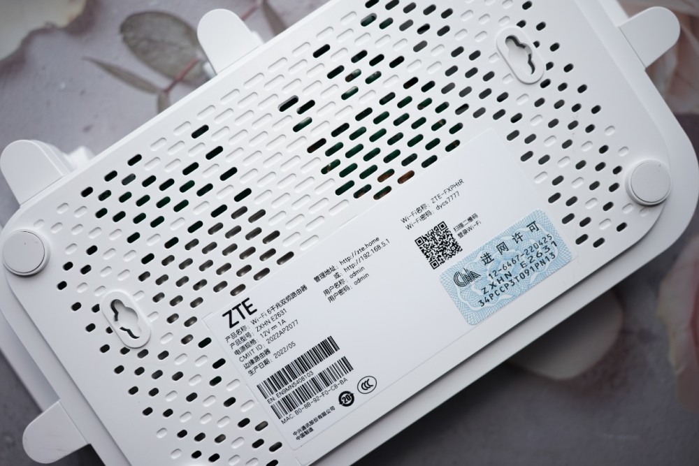 AX300具有非常简单的白色防护设计和良好的质量。 底部是一个大面积的散热孔,四个角落有突出的垫子,因此路由器和桌面有一定距离,完全保证散热。