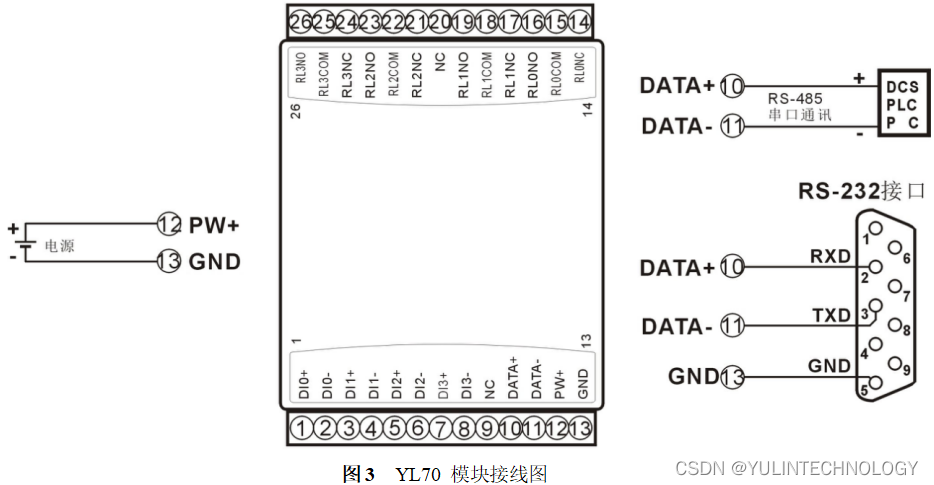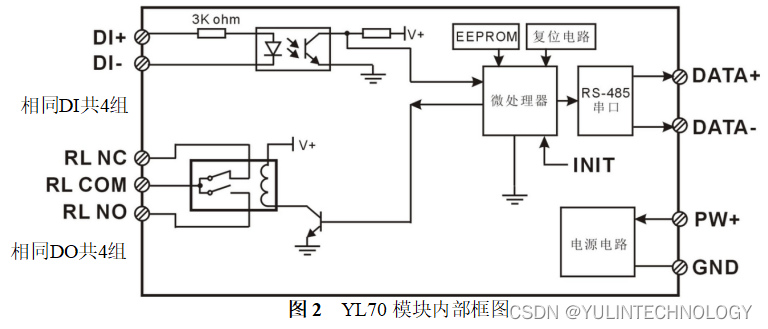 产品包括电源调理,开关采集、继电器输出和RS-485串行通信。最大255个YL70系列模块可以连接到每个系列端口。采用ASCII通信协议或MODBUSRTU通信协议,批量率可以按代码设置,控制模块可以与其他制造商一起安装在同一RS-485总线上,便于计算机编程。