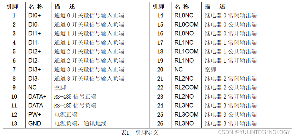 输出类型:C型继电器输出,4通道(DO0~DO3),开端,闭端,公开端。