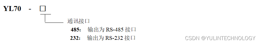 类型选择例1:类型:YL70-232表示通信接口是RS-232