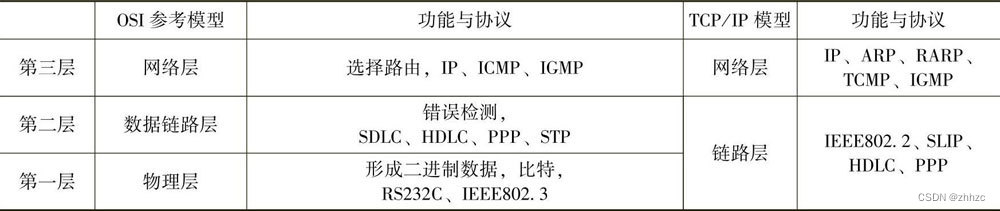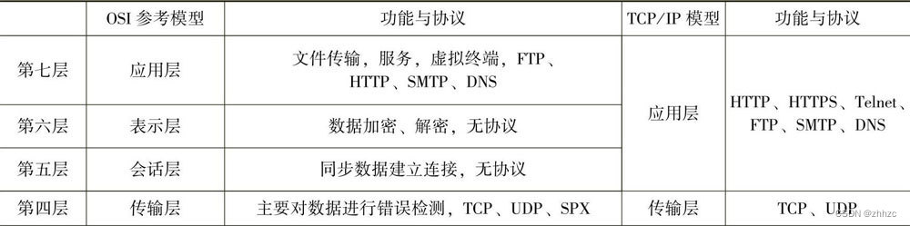 OSI参考模型与TCP/IP模型之间的关系,见表7-1