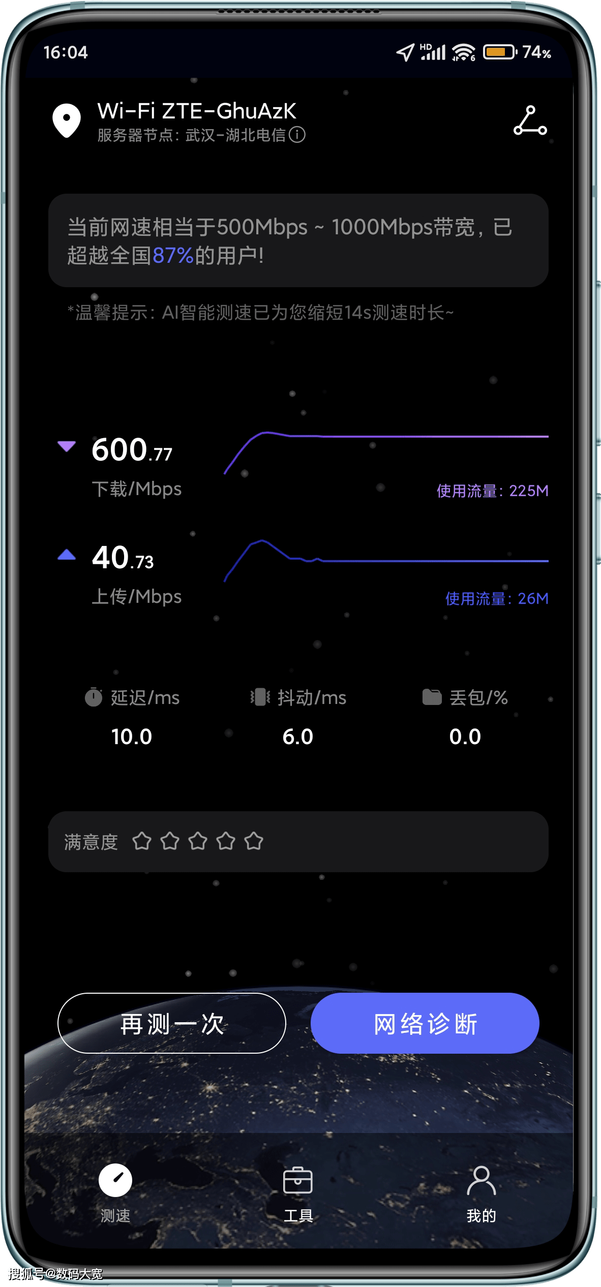 除了玩游戏也是一个主要问题,这里让我们看一下国王的光荣自走网络测试,这在卧室的墙隔离,可以发现路由器的延迟只有1ms,可以说相当出色。