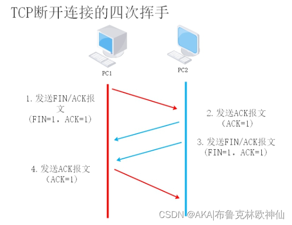 2,PC2接收PC1对请求的响应(ACK=1),表明确认PC1切断的请求已经接受。