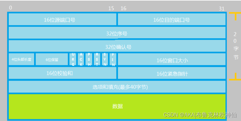 第一个部长级:它可以用于确定TCP第一个数据结构的字体长度。 一般来说,TCP头字是20字节,但最大头字可以扩展到60字节。